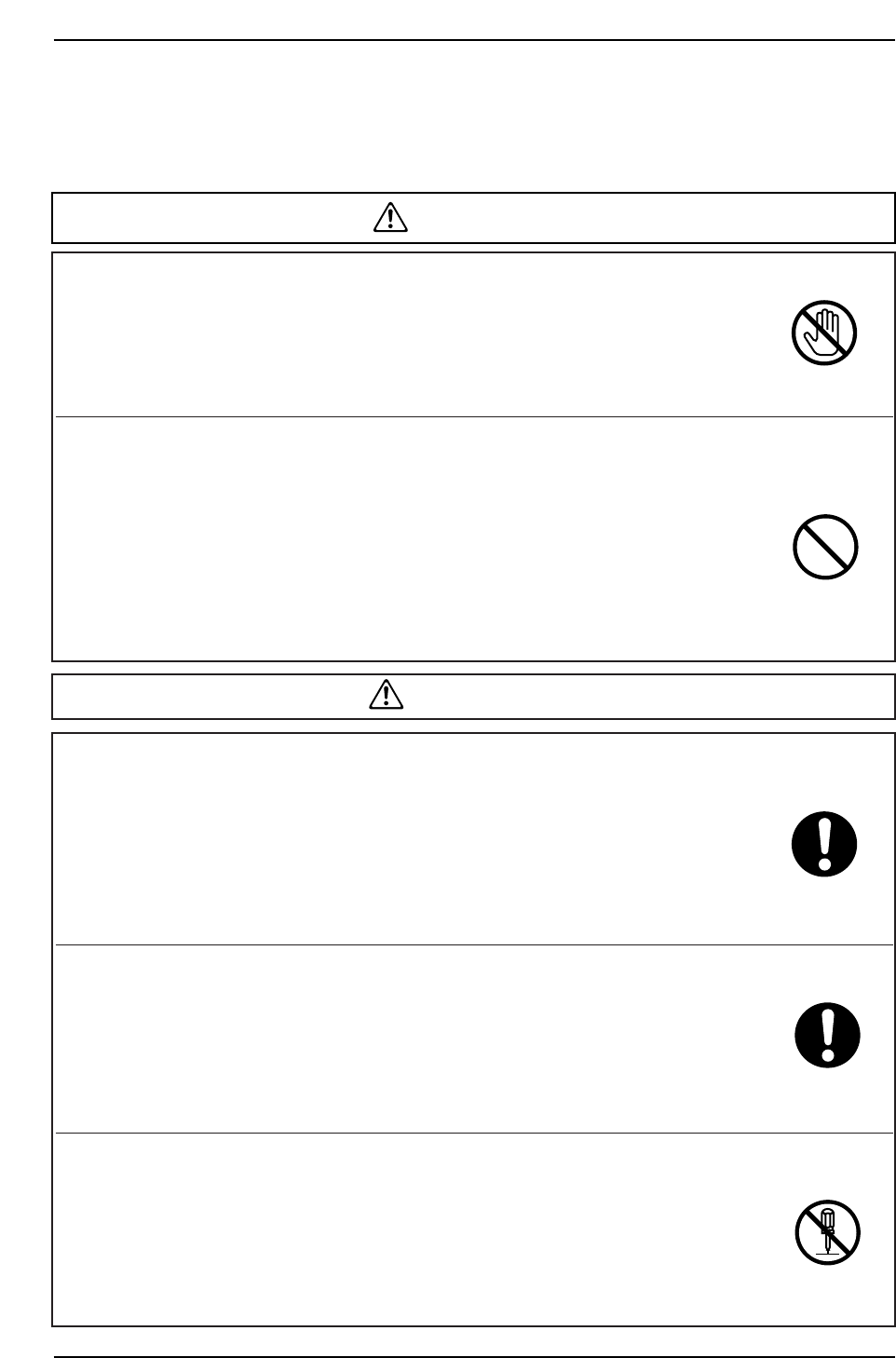 ● When safety covers or doors are removed, body parts or clothing