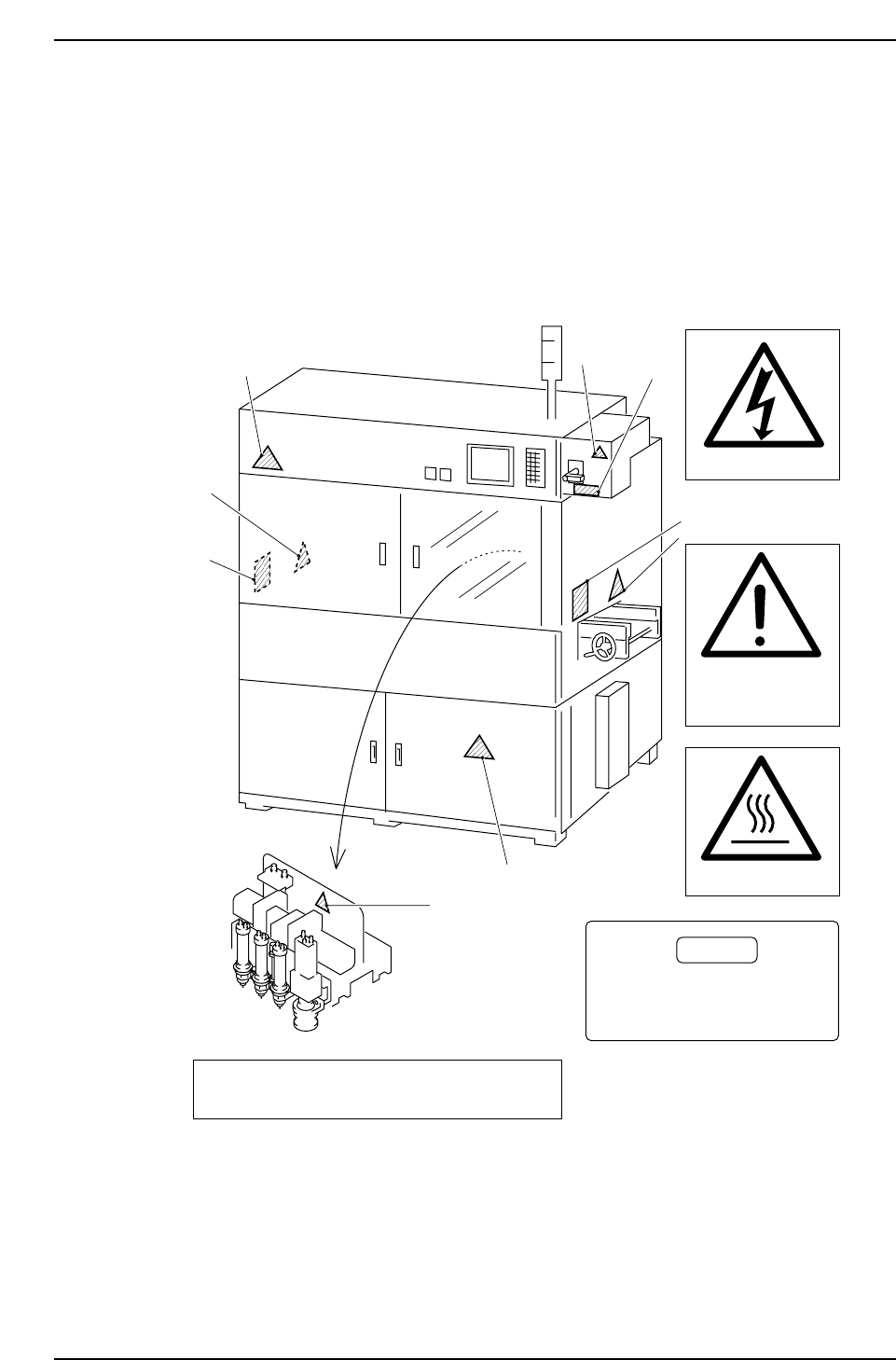 To warn the operator of hazards, safety labels are attached to the machine at the