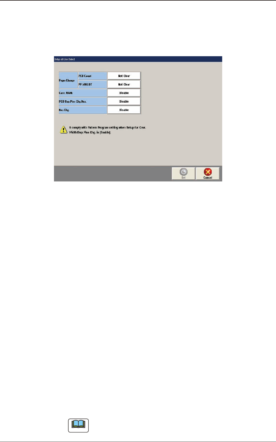 Using this button, the setup setting in the pattern program change is