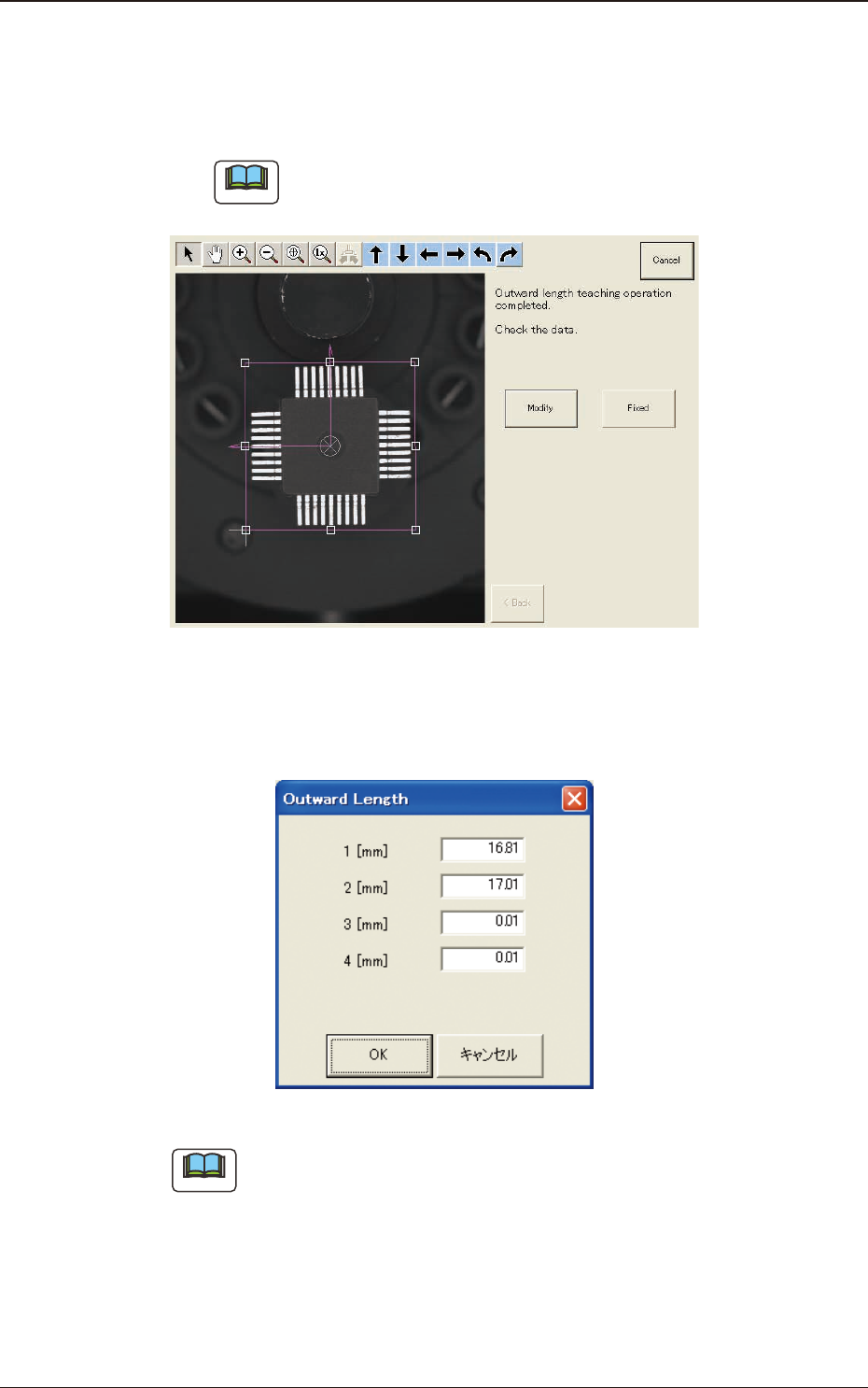 (6) When the outward length teaching is completed, check the data and press the