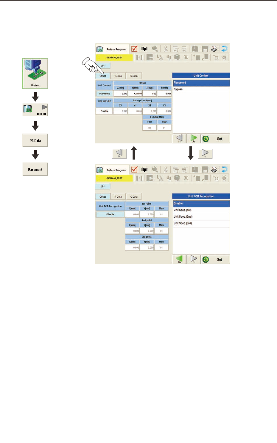 2OM-1751 2-56 (G01_01) Un Select one of the following tabs (placement data groups) in one pattern program. U01 : First Placement Data Group U02 : Second Placement Data Group ↓ Un : Up to 99 placement data groups can be s…