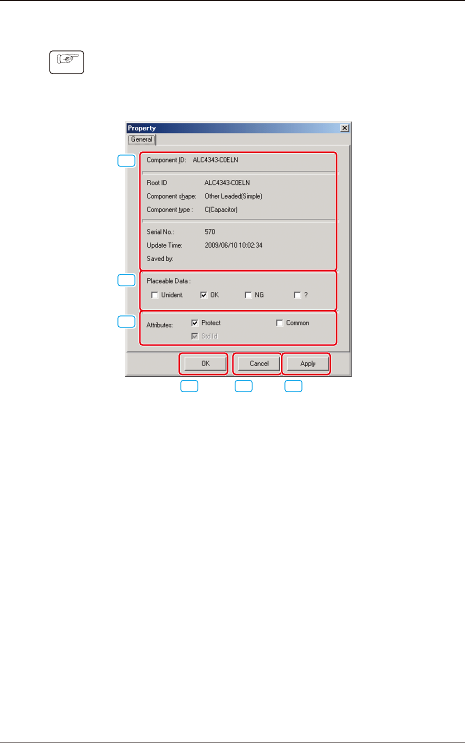 2OM-1751 3-12 1303-001 [3] Attributes (Protect, Common, Std Id) Displayed are the attributes of the selected component ID.The check boxes enable the operator to change the corresponding attributes. "Protect" Wh…