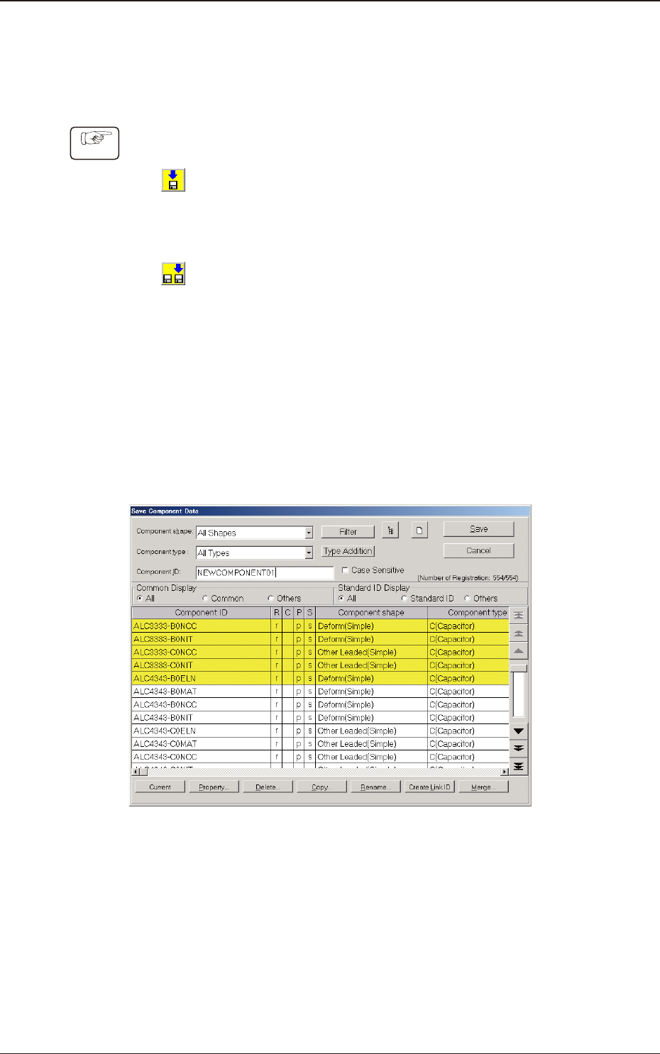 2OM-1751 3-16 1303-001 (4) Enter a new component ID name as a le name and press [Save] button in the "Save Component Data" window . (The data in the active edit window is saved as a le with the entered compon…