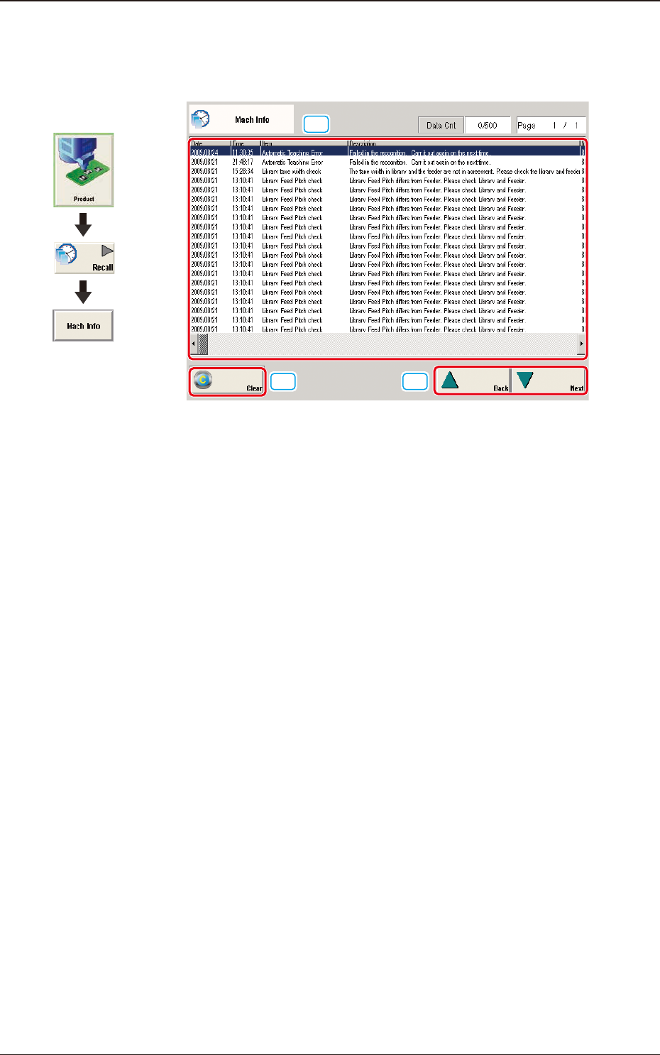 Up to 500 logs of the machine information will be displayed.