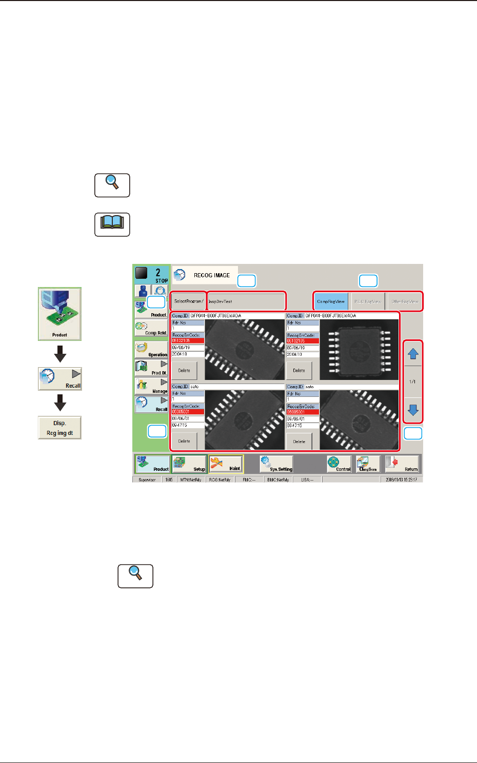 When the [Disp. Recg img dt] button is pressed, the images of the components