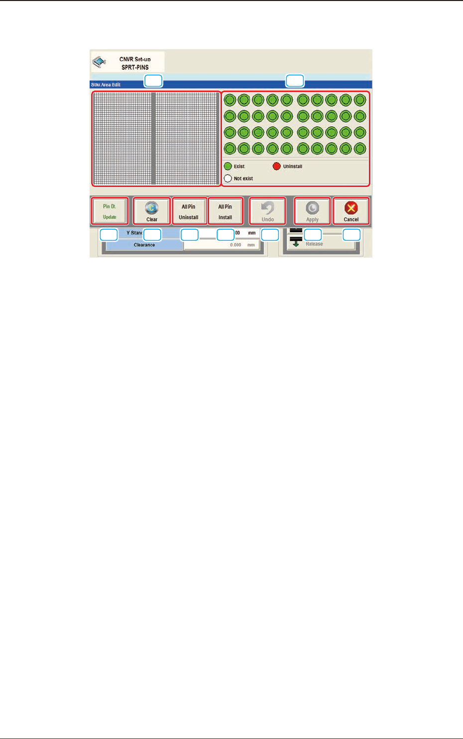 The arrangement condition of the PCB support pins is displayed.