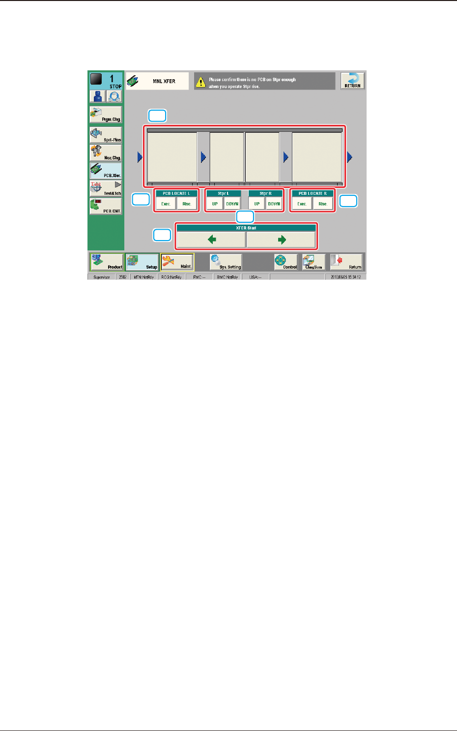 This "MNL XFER" window enables the operator to transfer a PCB manually.