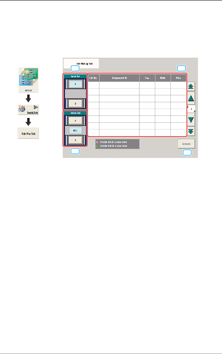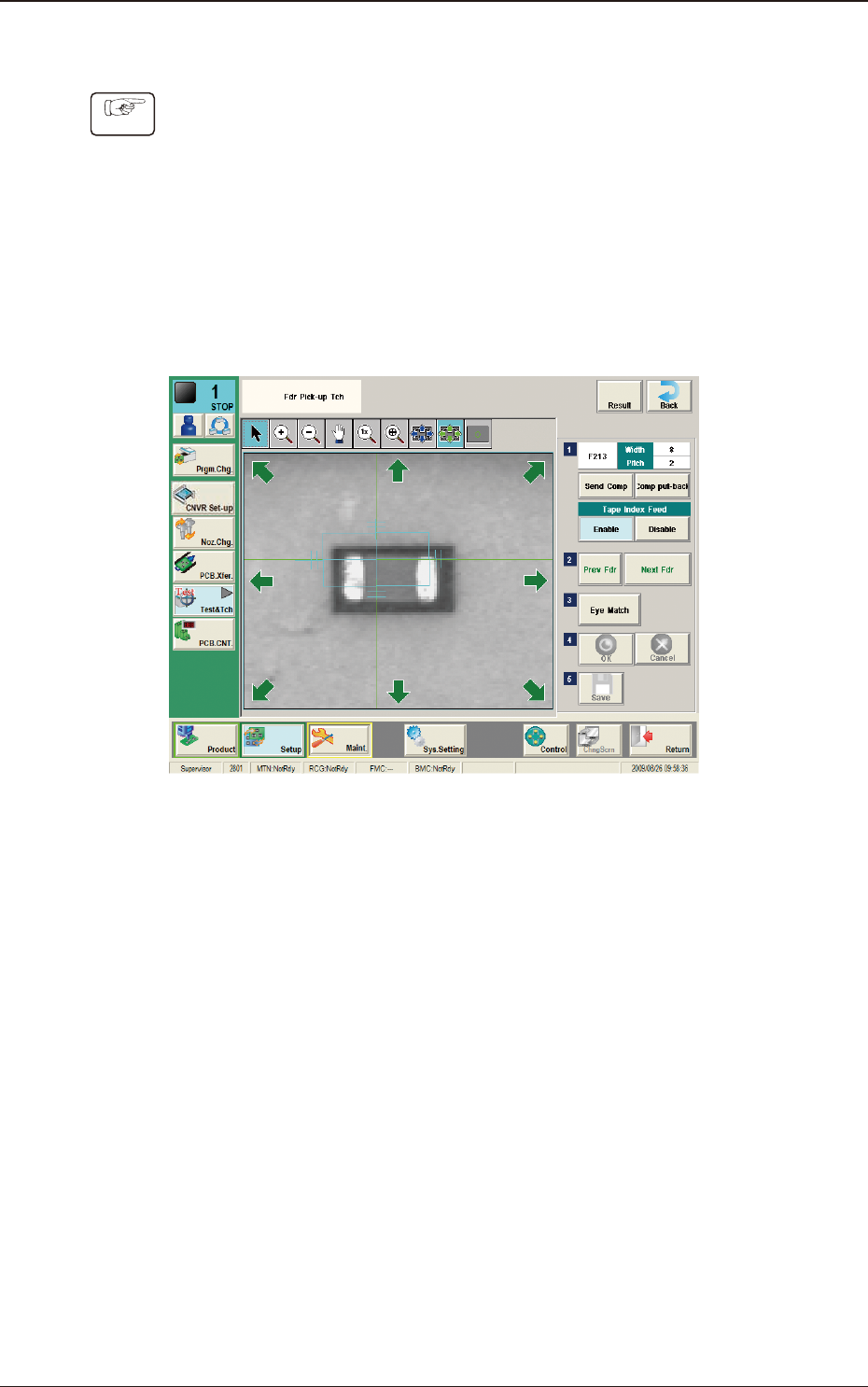 2OM-1751 6-30 1303-001 7.1 "Fdr Pick-up T ch" Window In this window, the teaching is performed with the manual alignment operation using the PEC recognition camera, for the offset data items to absorb the dispe…