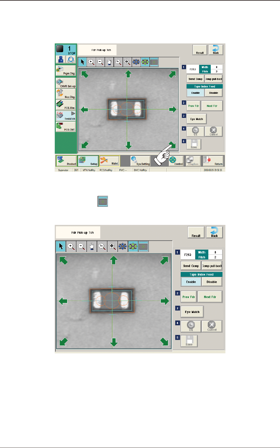 2OM-1751 6-32 1303-001 (6) Press the [Eye Match] button. (Start the manual alignment operation from the position shown using an arrow). F2F35 (7) Press the [ ] button if necessary . (Check the nozzle pick-up position). F…