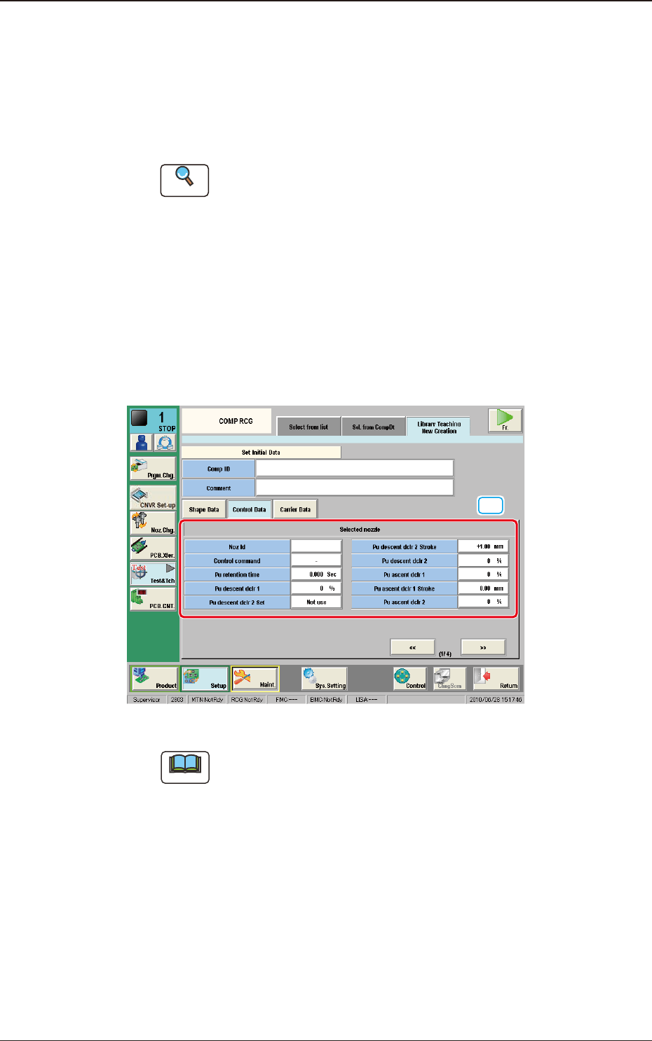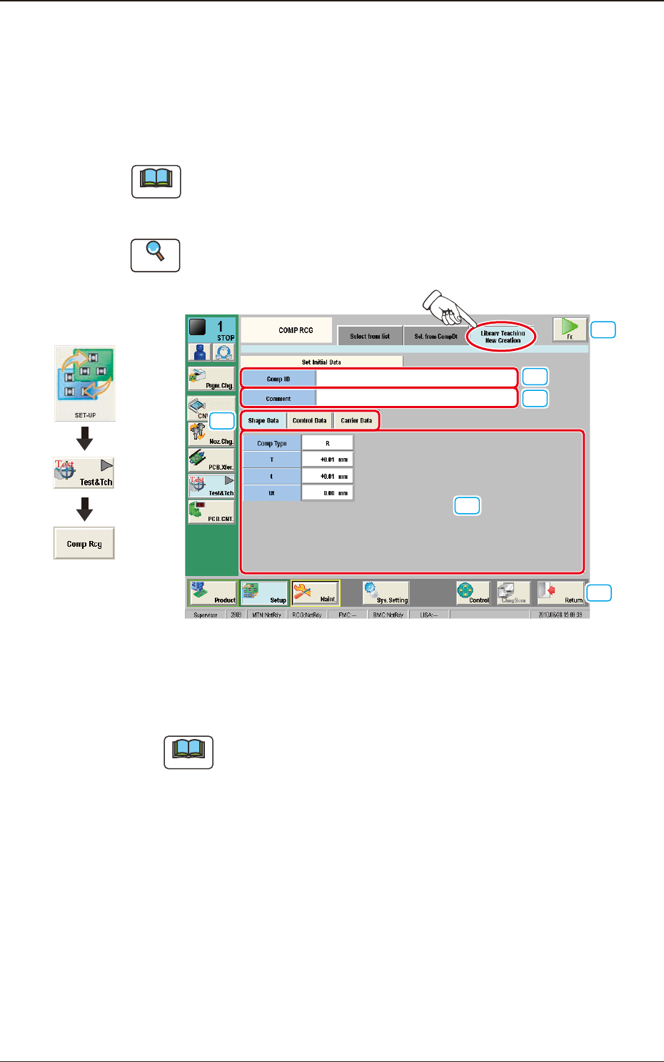 2OM-1751 6-49 1303-001 7.3.3 "Library T eaching New Creation" T ab Sheet On this tab sheet, the initial data parameter entry is performed for the data to be created newly. When the [Library T eaching New Creati…