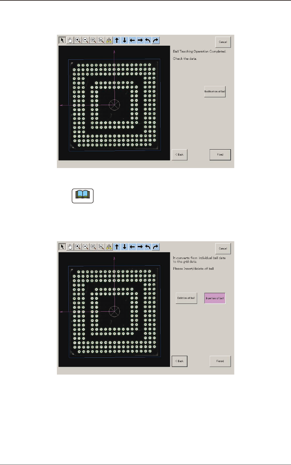 2OM-1751 6-93 (10-2) If there is any necessary ball to be added, after pressing the [Insertion of ball] button, specify the range of the balls to be added on the image and add such balls. (1 1) When the teaching is compl…