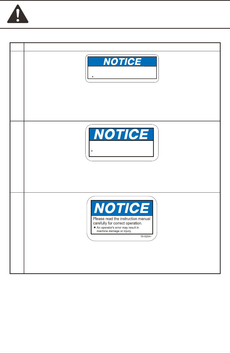 Safety Precautions Safe-28 1OM-1751 1305-002 5. Alert Labels No. Alert Labels and Description (13) Description Do not drop a feeder . Otherwise, a foot injury will result or the feeder itself may be damaged. Carefully …
