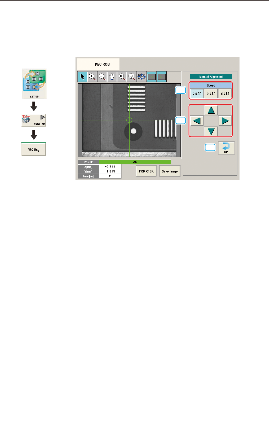 2OM-1751 6-98 1303-001 7.4.1 Manual Alignment Operation The PEC recognition position is located using the manual alignment operation. When the [Manual Alignment] button is pressed after the [Move] button is pressed on th…