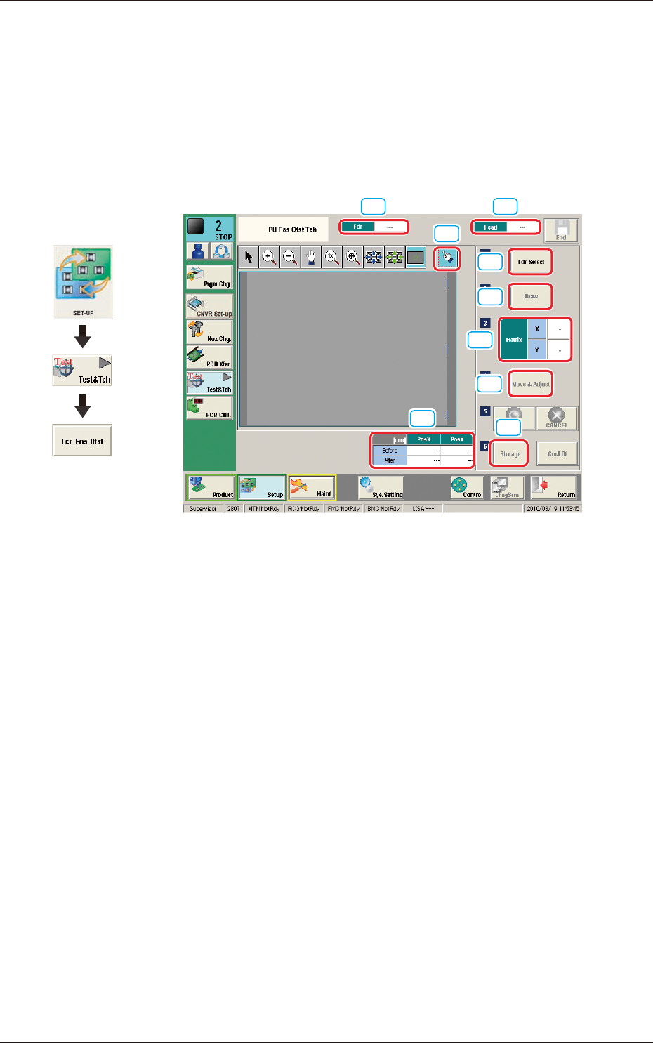 2OM-1751 6-103 1303-001 [5] [Draw] Button This button is used for the multi-layer tray feeder (option). [6] Matrix This group box is used for the multi-layer tray feeder (option). [7] [Move & Adjust] Button This butt…