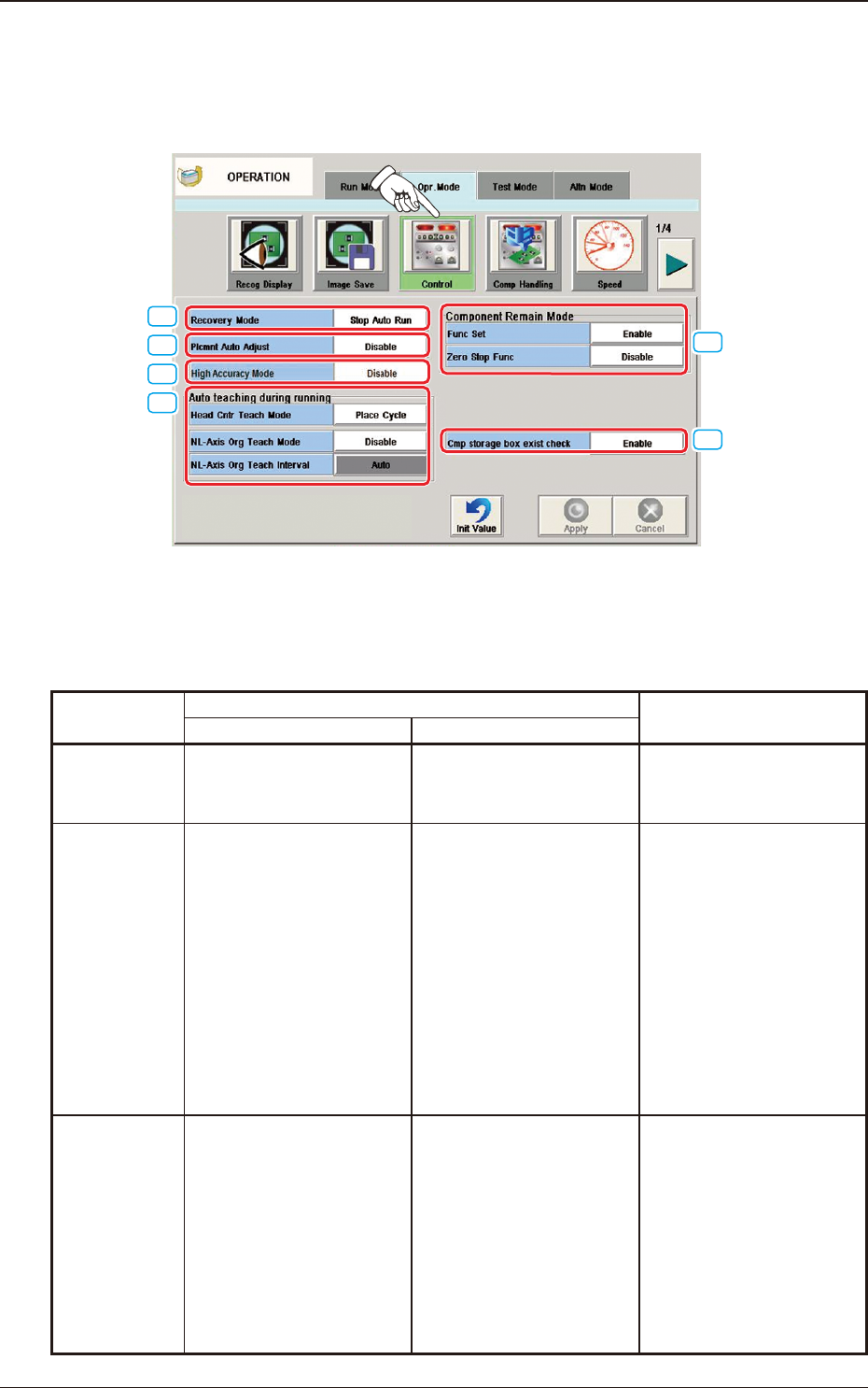When the [Control] button is pressed on the "Opr. Mode" tab sheet, the following
