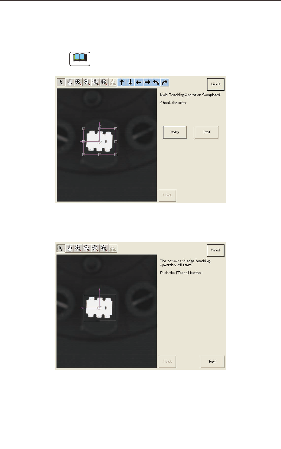 (6) Press the [Teach] button to start the mold teaching operation.