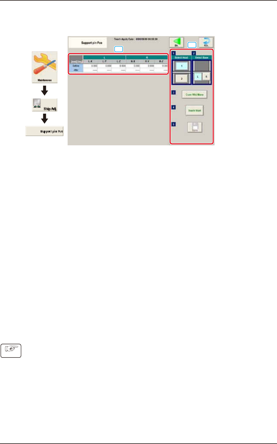 (5) Press the [Teach Start] button. (The support pin position teaching is performed.)