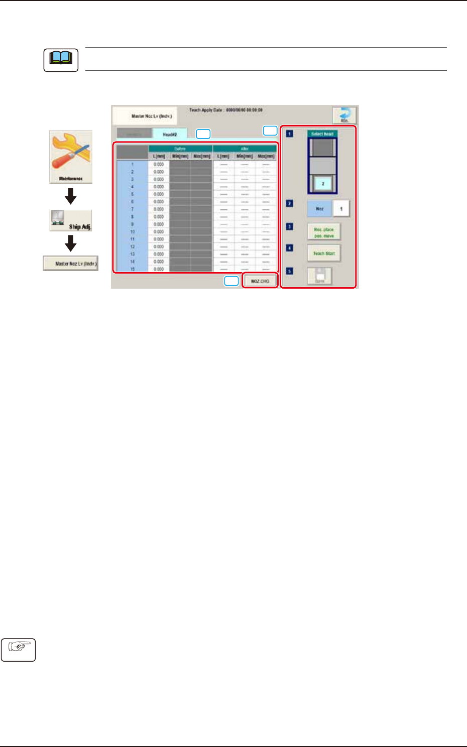EUKYX 1-55 199-3100 5.17 Master Noz Lv (Indv .) 5. 1 7 Master No z L v ( Indv . ) Thi s window is not displayed wh en the multi -f unctional head is se lect ed. The master no zzle l evel i s t augh t ind ividua lly . [1]…