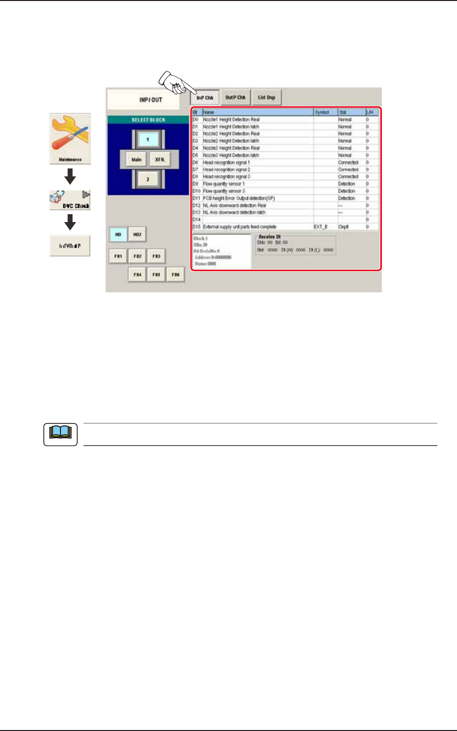 Pressing the [InP Chk] button on the "INP/OUT" window displays the following window. Check the