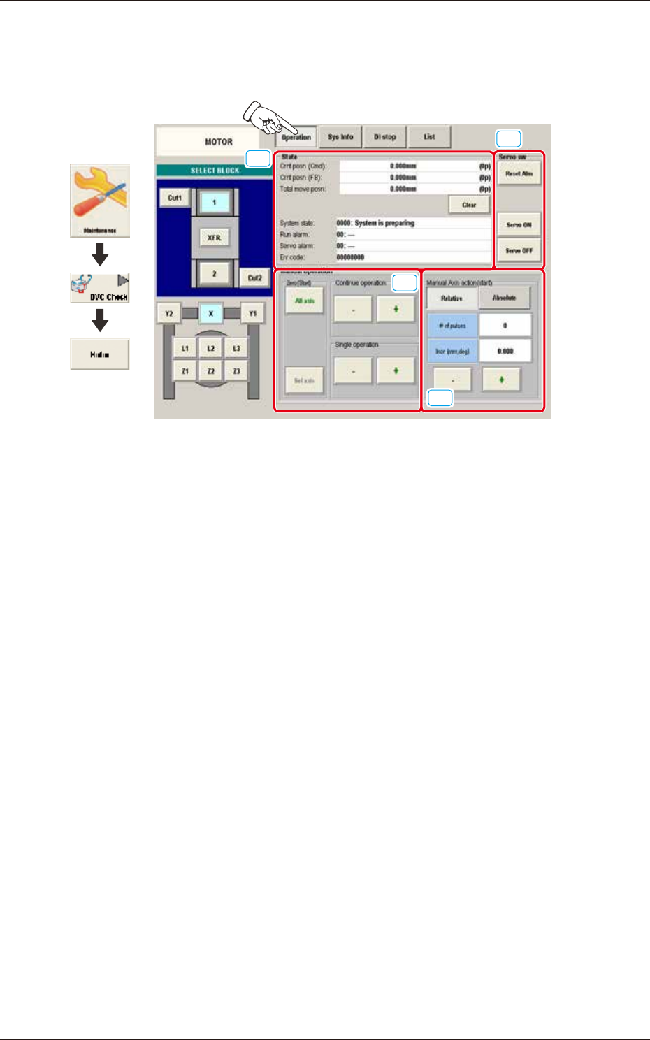 Pressing the [Operation] button on the "MOTOR" window displays the "Operation" window. The