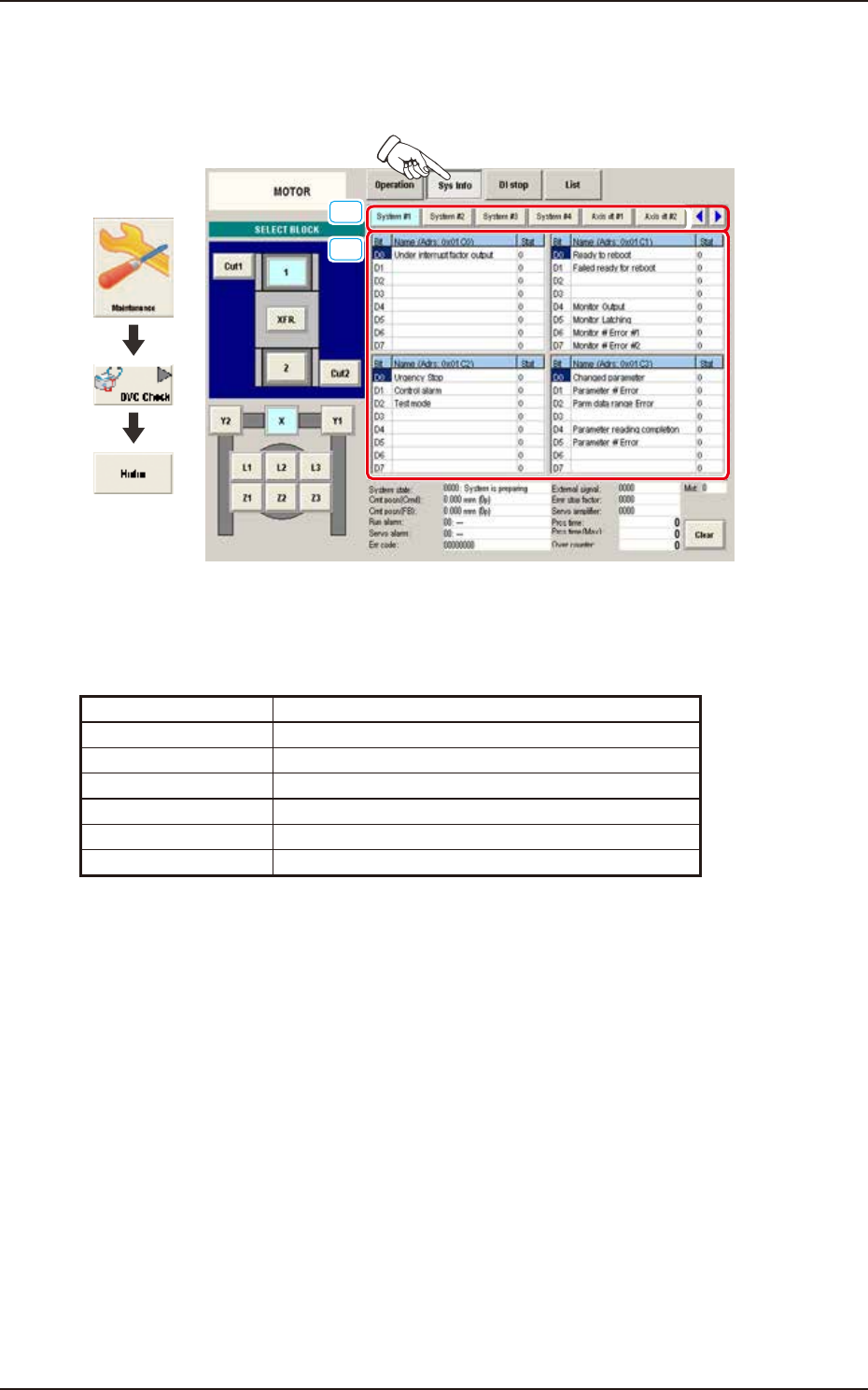 The "Sys Info" windows are provided with the following item. When each button is pressed, the