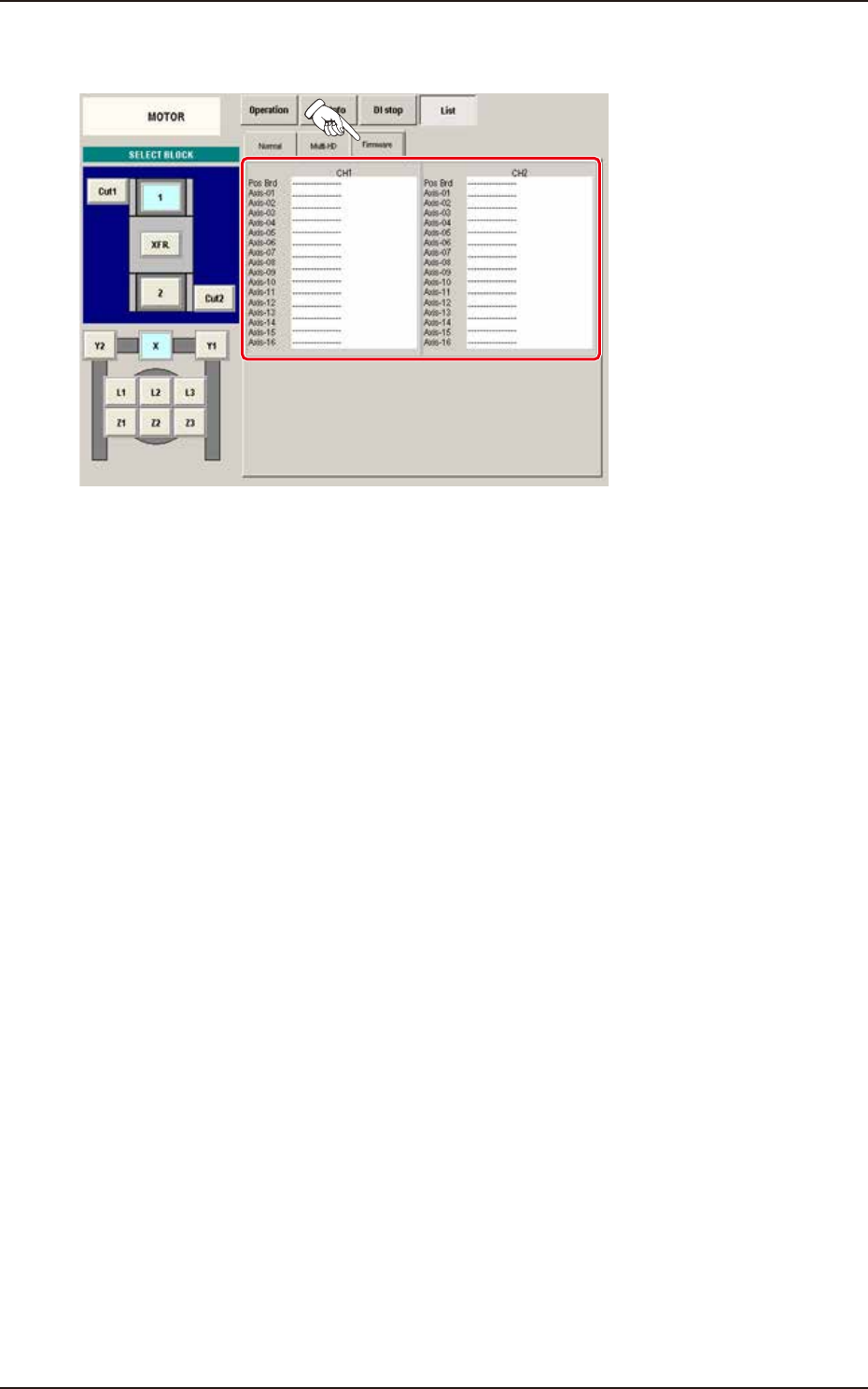 Pressing the [List] button on the "MOTOR" window displays the following window. The window