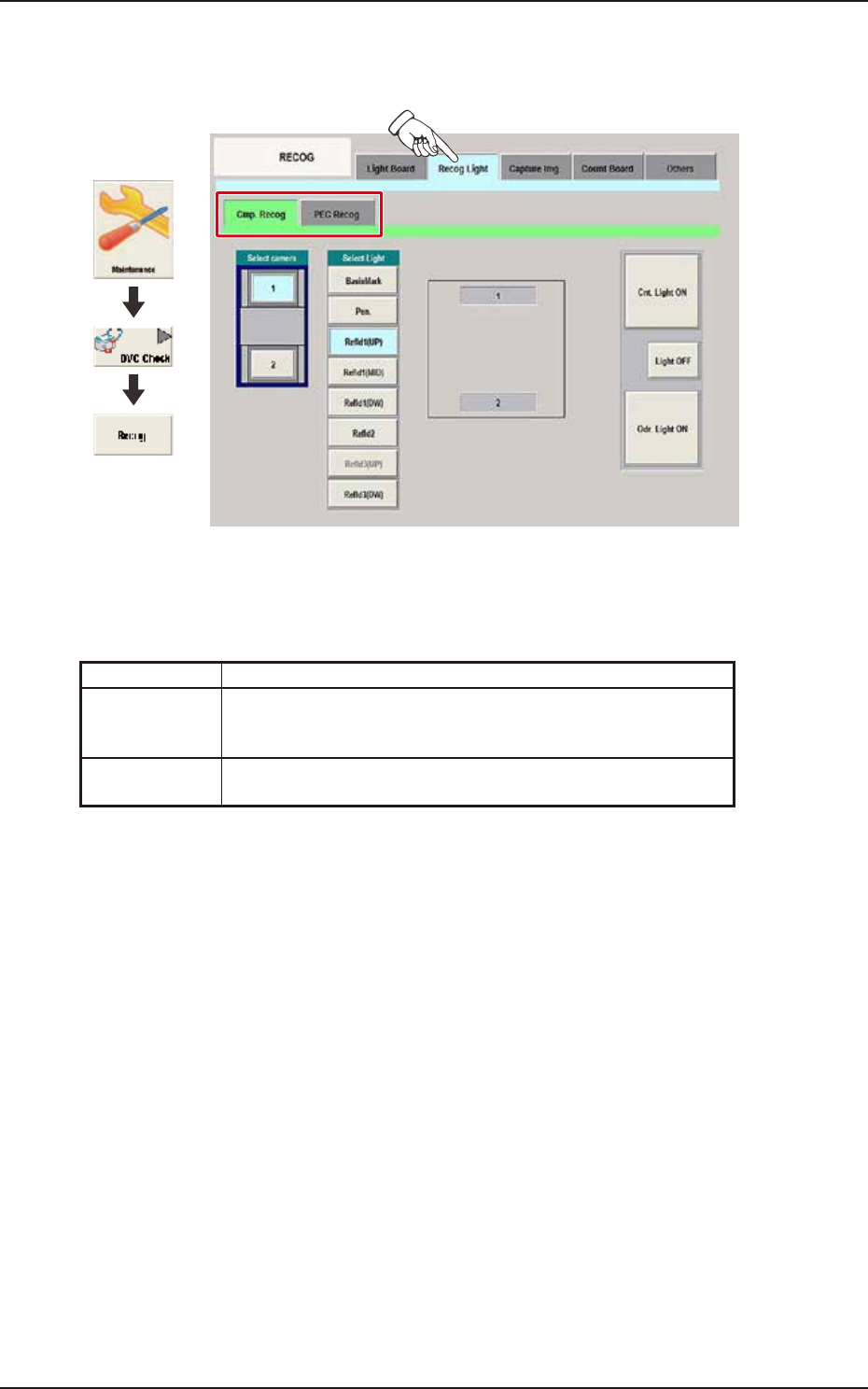 PEC Recog In this tab sheet the PEC recognition lighting is turned ON and the