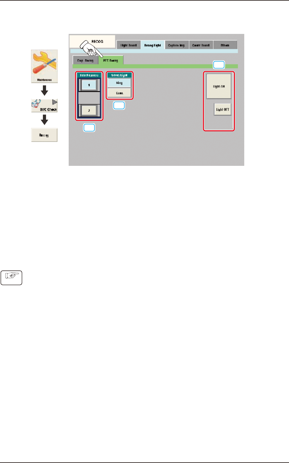 Using these buttons, the PEC recognition camera to check the PEC recognition lighting, is selected.