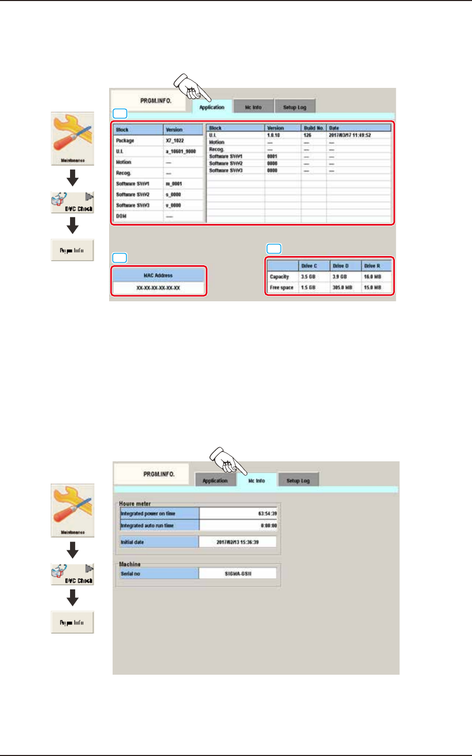 Pressing the [Mc Info] tab on the [PRGM.INFO] window displays the following window. The