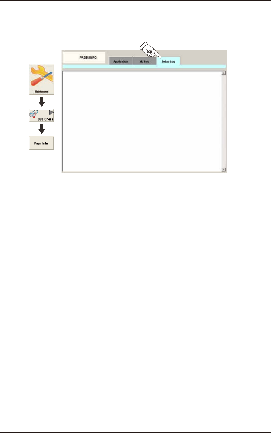 EUKYX 1-90 199-3100 6.5 PRGM.INFO. 6.5.3 Setup Log Pressi ng the [S etup Log] tab on t he [ PR GM.INFO] window d isp la ys the fol low in g win dow . The setup log in format ion is d ispla yed. Graphic Development F3A84A…