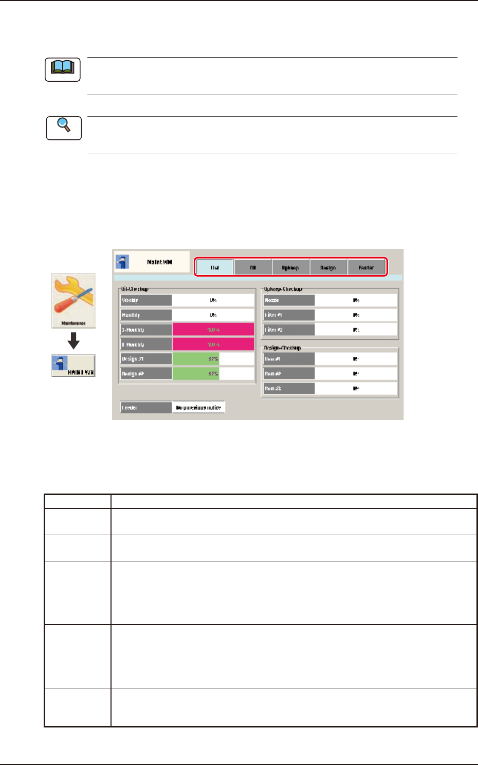and also the maintenance and inspection timing is notified in the "Mach Info" window. For the