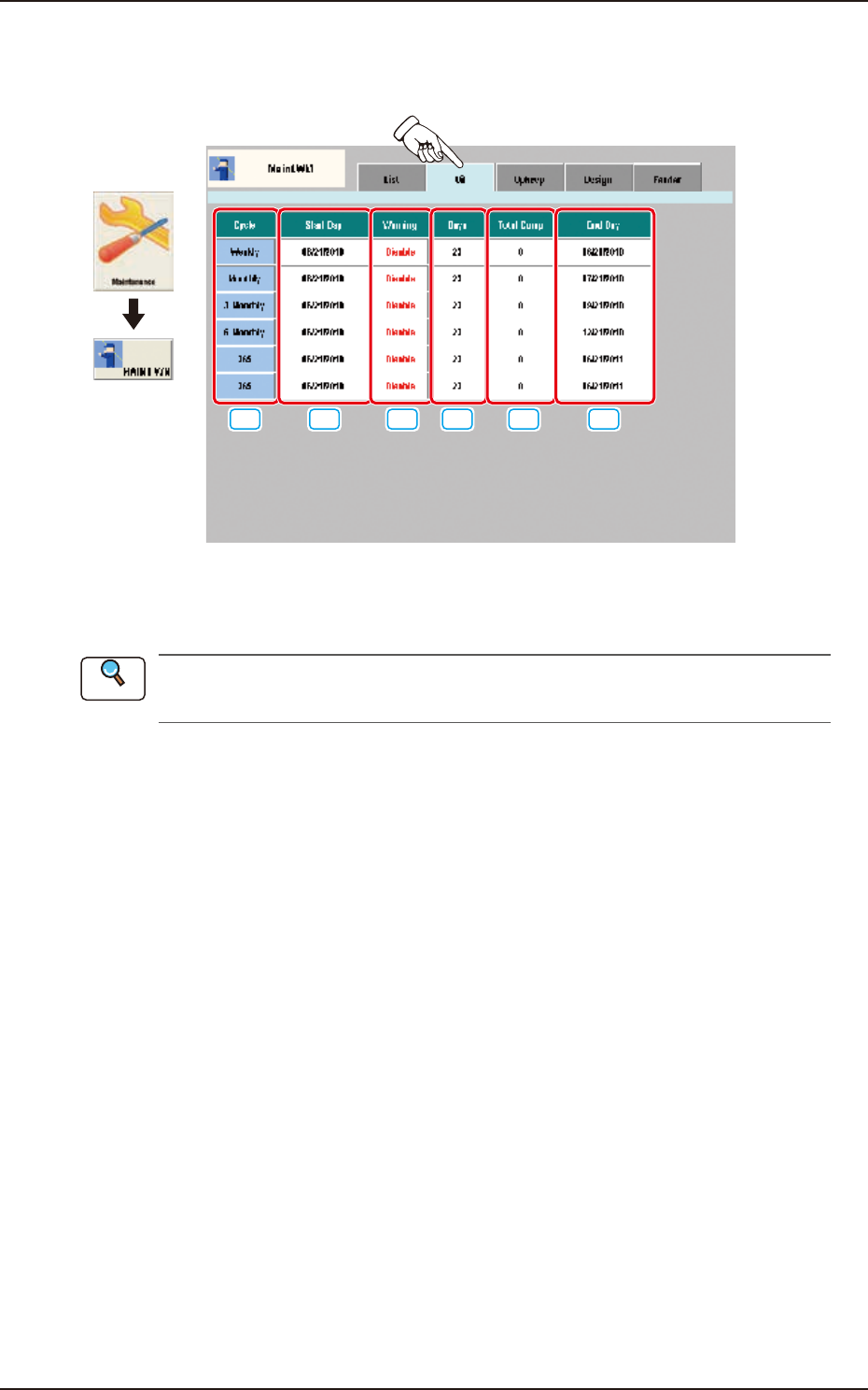 In these data boxes, "Enable" or "Disable" for the warning of the maintenance timing set up in the