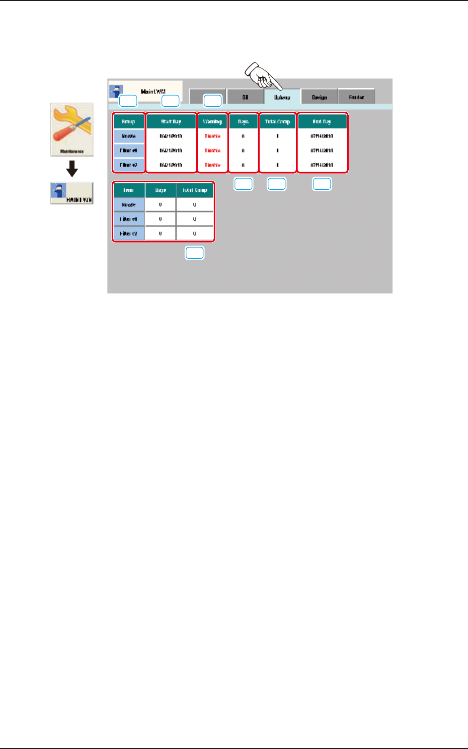 In this section, the maintenance items of "Nozzle", "Filter #1" (head filter) and "Filter #2" (air source
