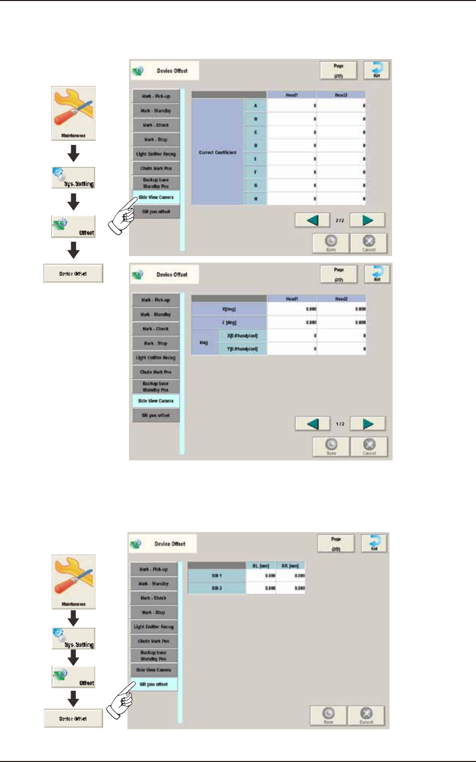Pressing the [Slit Pos Offset] tab on the "Device Offset" window displays the following window.