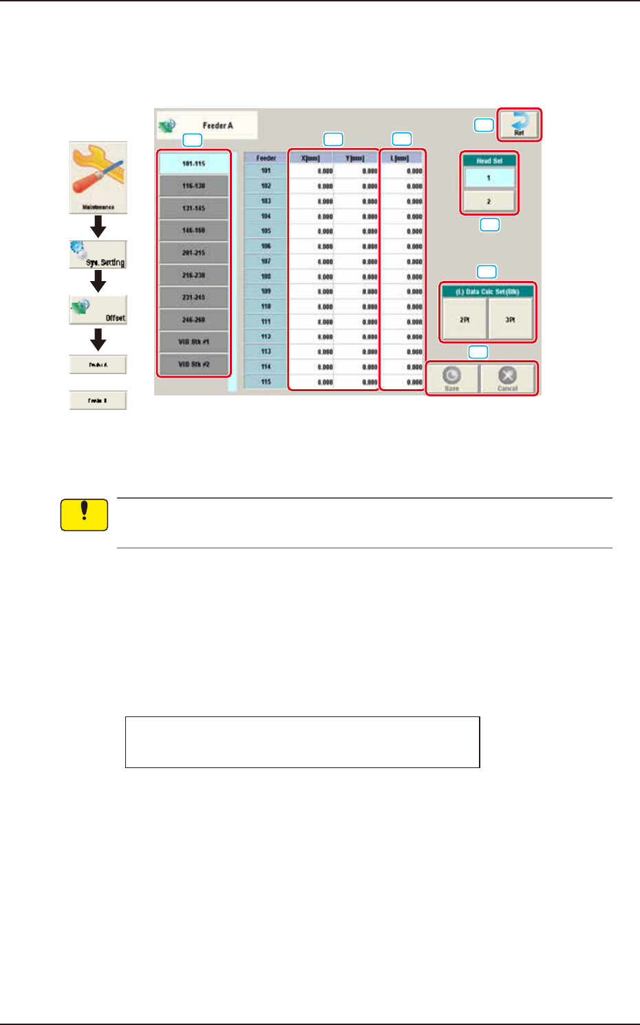 This offset data is used to correct variation in each feeder slot (Fdr No.) of the feeder base.