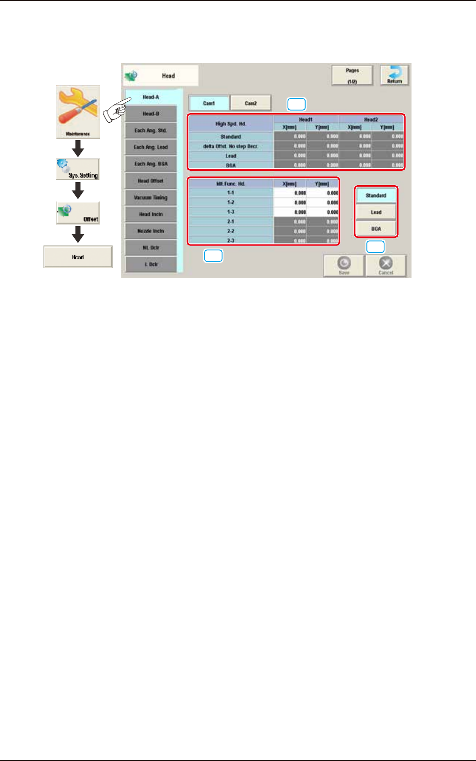 [1] High Spd. Hd., Head 1 and Head 2 (X [mm], Y [mm] /Standard)