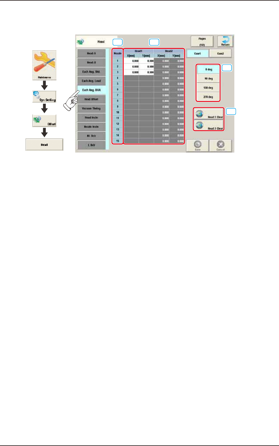 EUKYX 2-27 199-3100 2.5 Head 2.5.5 E ach Ang. BGA Pressi ng the [Each Ang. B GA] tab on the " Head" wi ndow di spla ys the fol lowi ng window . [1] [2] [3] [4] Graphic Development F3B36A [ 1 ] Nozzl e 1 through…