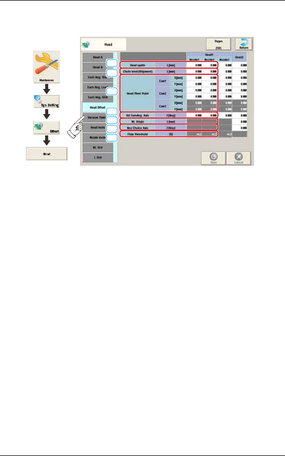 the lower surface of the nozzle. The amount of movement of each axis is separately reviewed.