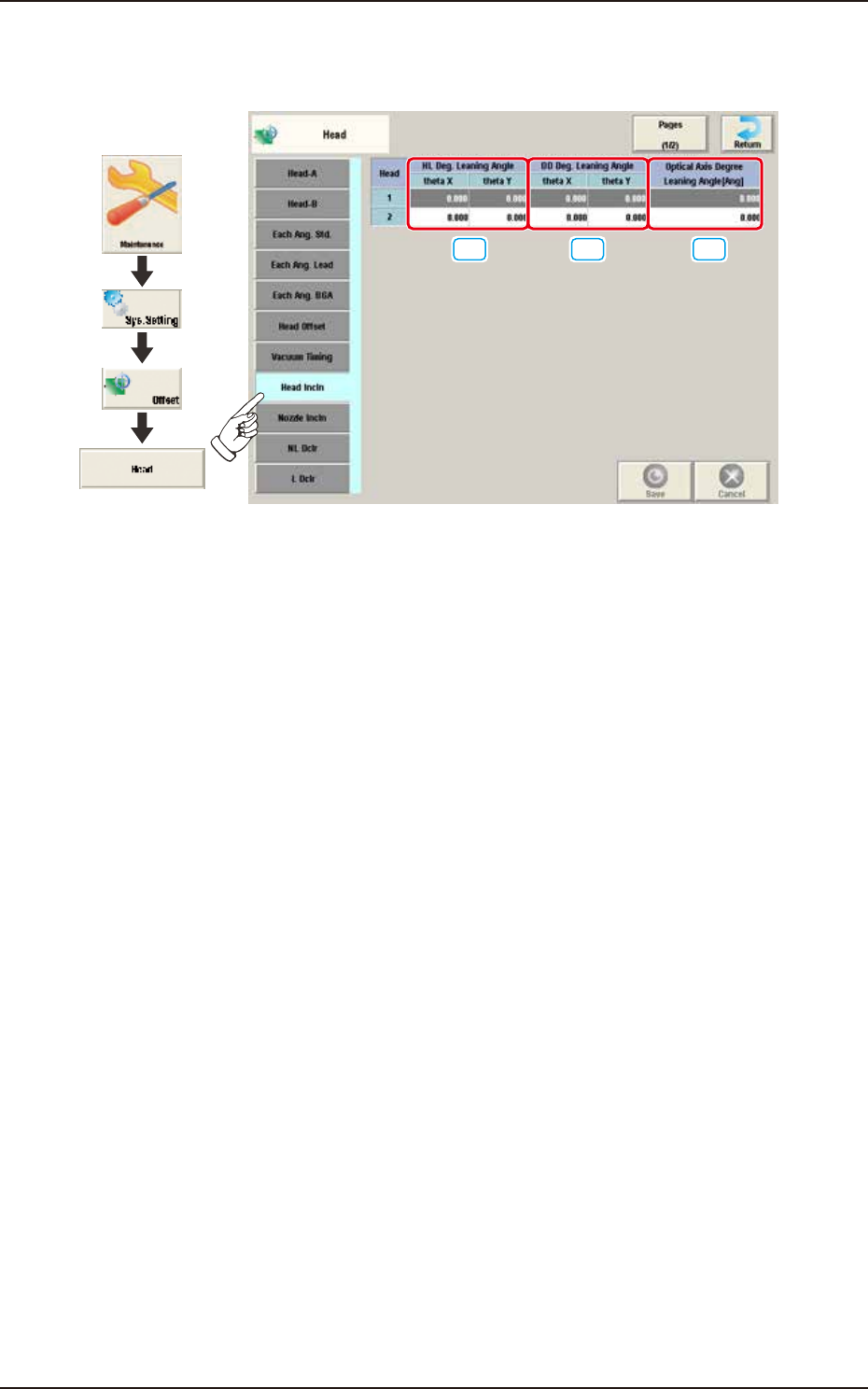 EUKYX 2-33 199-3100 2.5 Head 2.5.8 He ad Incln Pressi ng the [Head Incl n ] tab on t he "Head" win dow di spl ays the fol lowi ng wi ndow . [1] [2] [3] Graphic Development F3B42A [ 1 ] HL De g. Leaning A ngle t…