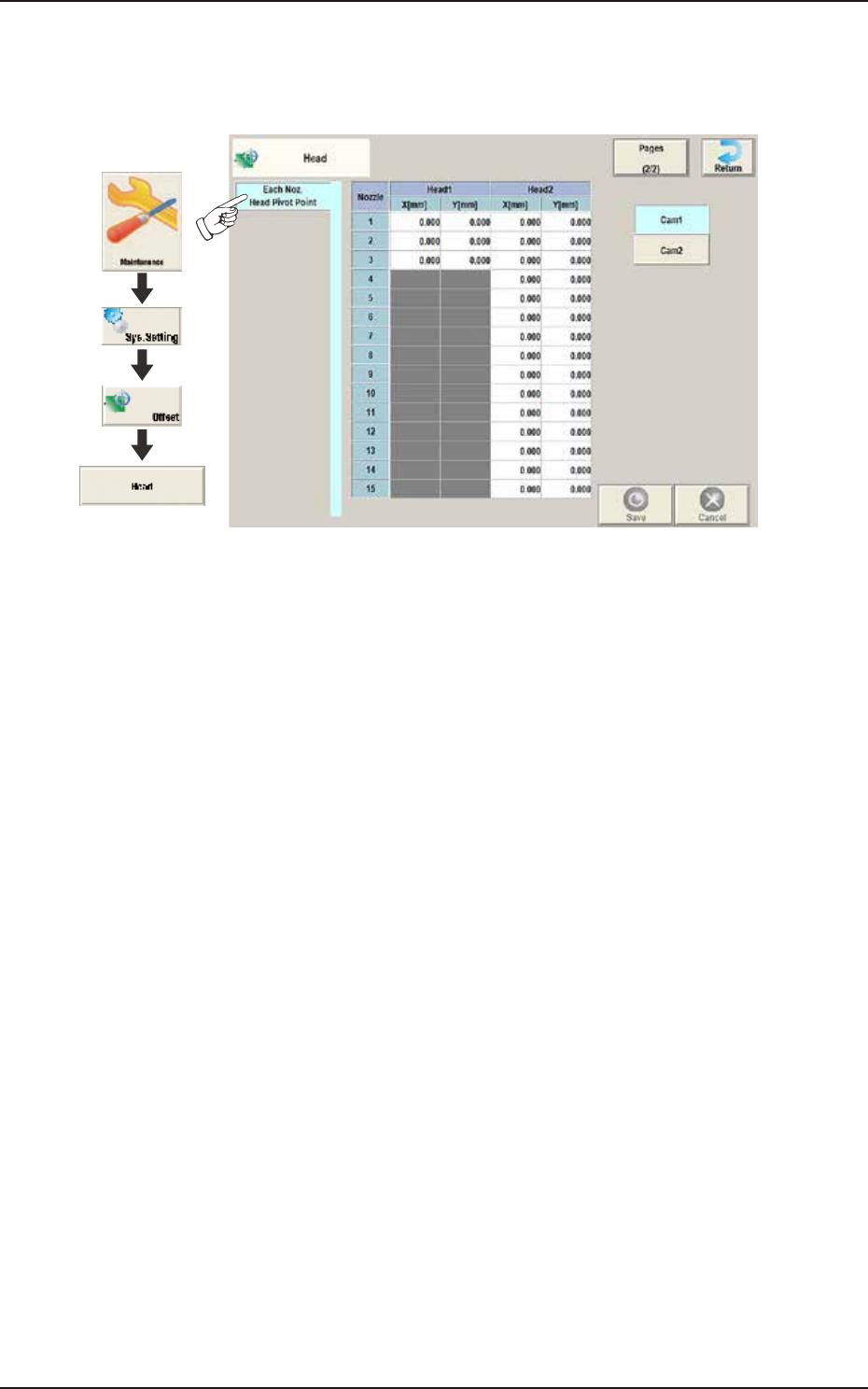EUKYX 2-36 199-3100 2.5 Head 2.5. 1 1 Each Noz. Head Piv ot Point Pressi ng the [Each No z. Head Pi vot P oi nt] tab on the "He ad" wi nd ow di spla ys t he fol lowi ng w i n d o w. The head rotation center per…