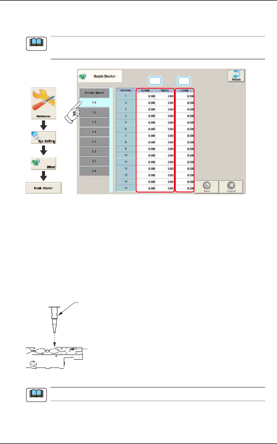 This offset data is used to adjust the nozzle change position deviation from the nozzle stocker unit