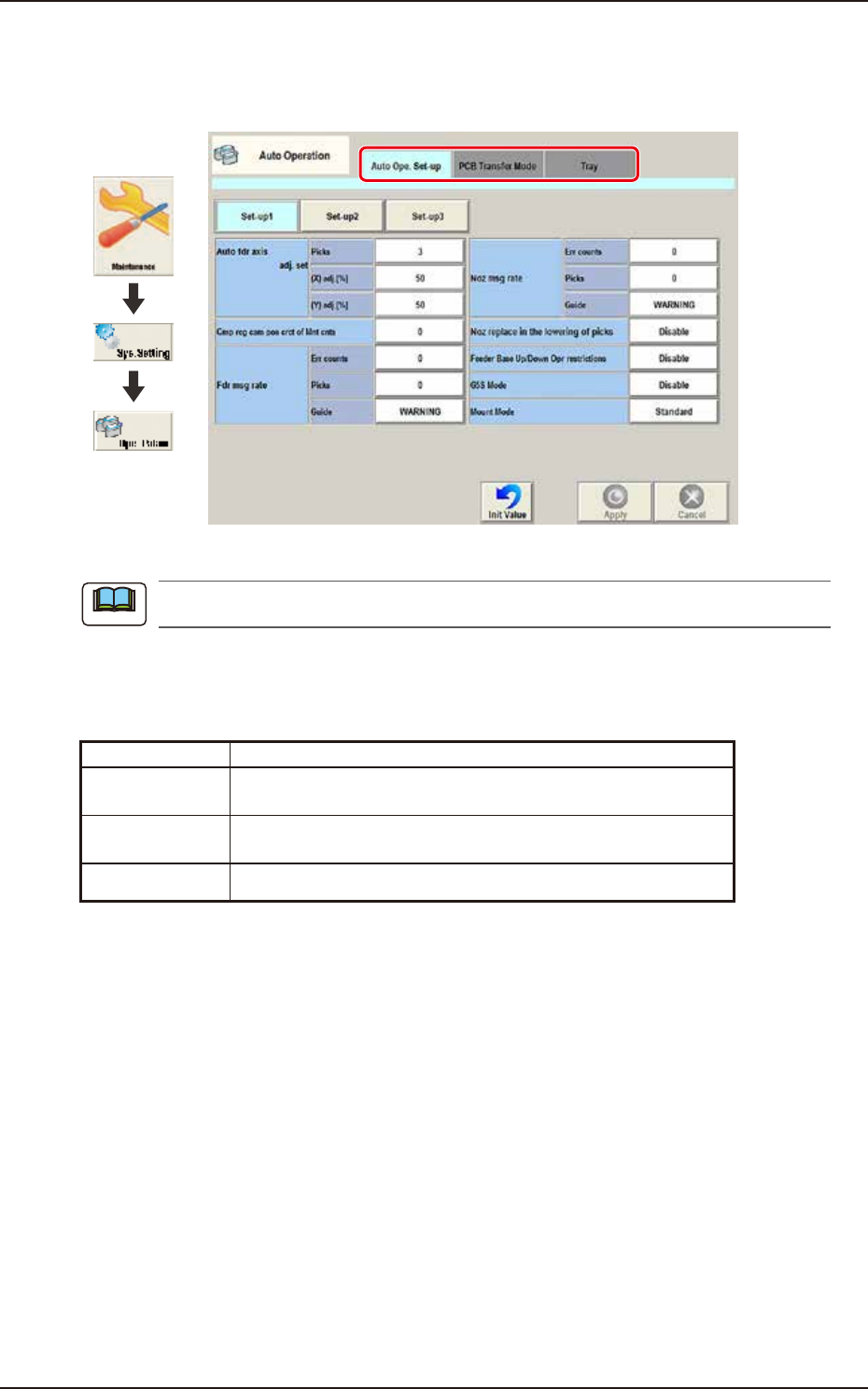 The "Auto Operation" window is provided with the following 3 tabs. When each tab is pressed, the