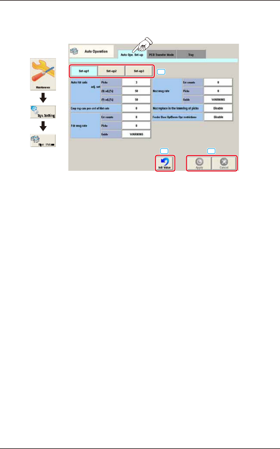 EUKYX 2-56 199-3100 3. Auto Operation 3 . Au to Op eration Pressi ng the [Sys. Setting] - [ Op e. Pa l am] but tons di spl ays the fol lowi ng wi ndow . Graphic Development F3B71A The tab sheet may look diff erent , depe…