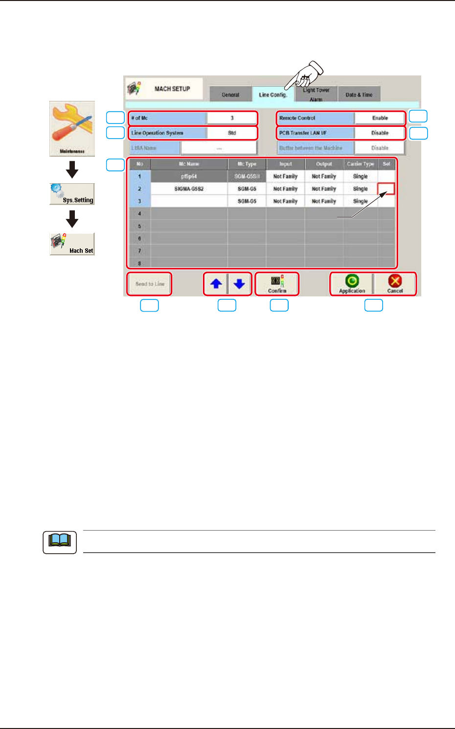 Pressing the [Line Config.] tab on the "MACH SETUP" window displays the following window.