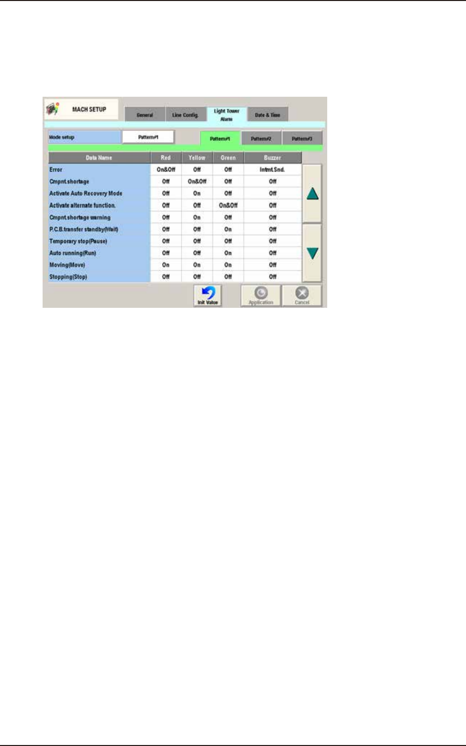 Pressing the [Light Tower Alarm] tab on the "MACH SETUP" window displays the following window.