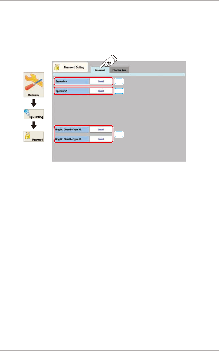 Pressing the [Sys. Setting] - [Password] buttons displays the following window.