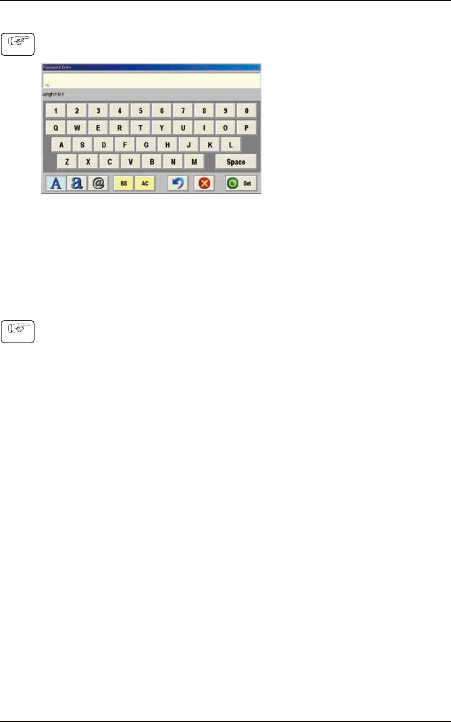 (2) Press the [Set] button without entering any characters in the entry box. The "Password