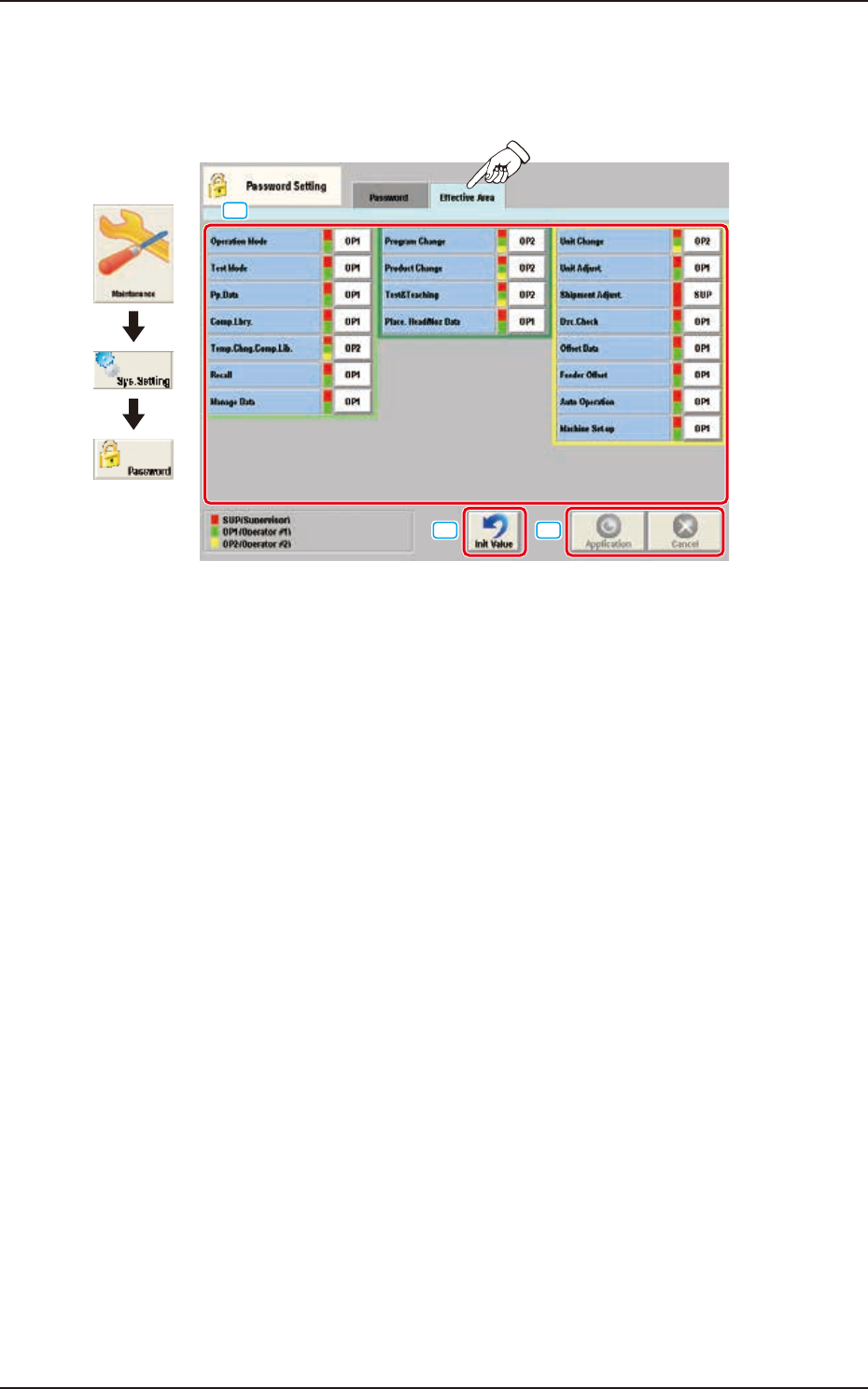 pressed on the "Password Setting" window, the "Effective Area" tab sheet appears.