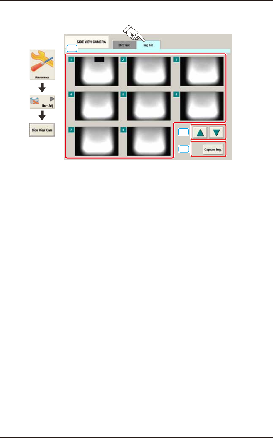 EUKYX 1-18 199-3100 4.2 SIDE VIEW CAMERA 4.2. 2 Img list [1] [2] [3] Graphic Development F3A17A [ 1 ] The imag e display se ction The im ages by no zzle appear after the d etection test. [2] Scroll b utt ons Scr olls the…