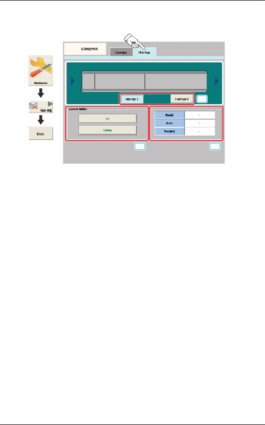 The adjustment for each PCB stopper is performed on this tab sheet.